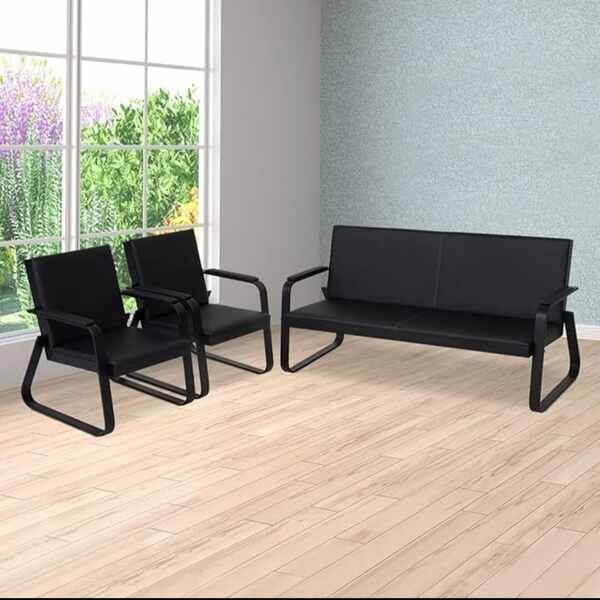 Black 5-Seater Office Waiting Sofa